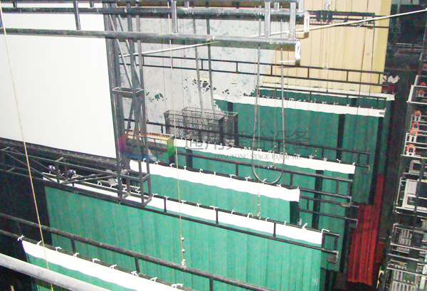 舞臺吊桿以前是用人工操作,后來改為電動的,現在都是用微機控制了。一個舞臺少則兩道吊桿(臺口一道,后幕一道),多則幾道、十幾道吊桿。